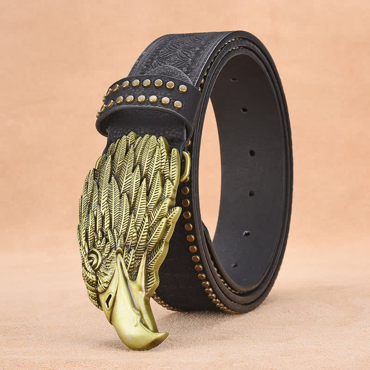 C'è un motivo avvoltoio sulla testa della fibbia della cintura in pelle da uomo, che simboleggia libertà, onore e coraggio. È facile regolare la cintura e aggiungere un tocco d'avanguardia al tuo outfit.