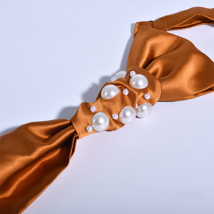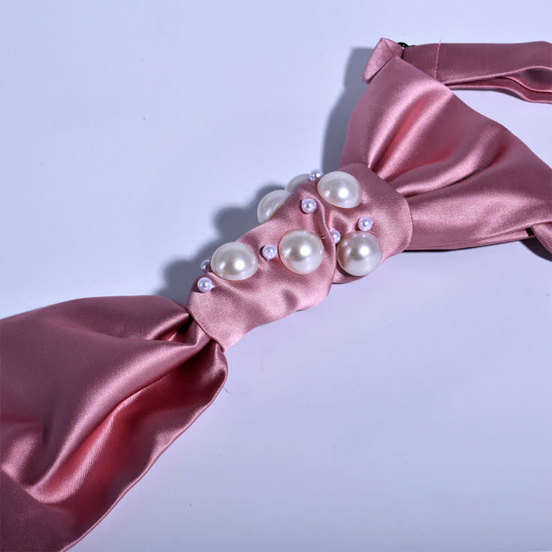 Questa splendida cravatta pre-annodata è un complemento perfetto per lo sposo o il padre della sposa e dello sposo. Il papillon decorato con perle sparse è perfetto per fare un'ottima prima impressione.