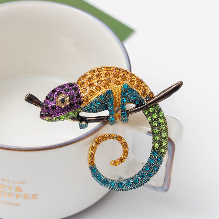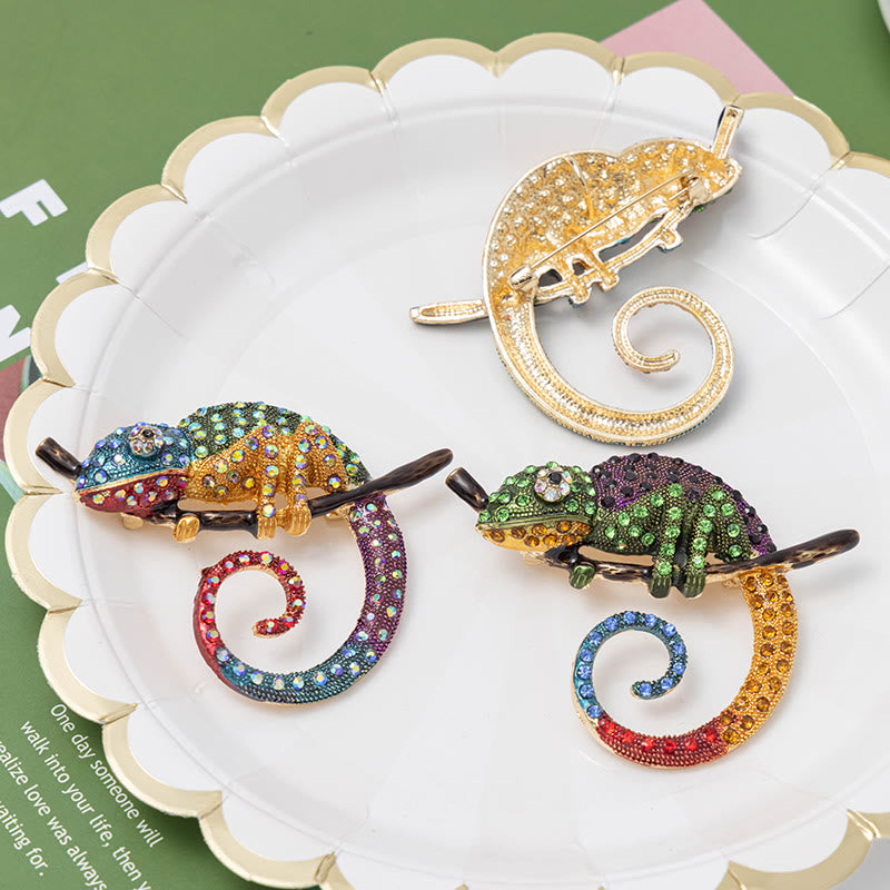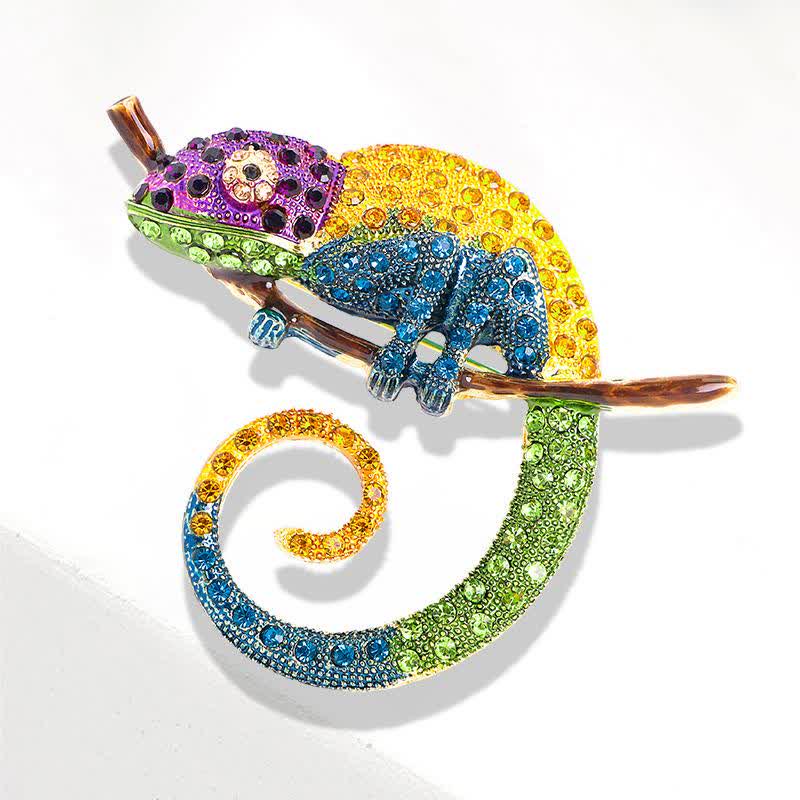 - Questa spilla è caratterizzata dal corpo di una lucertola in stile retrò, le cui zampe palmate si muovono seguendo un design articolato.
