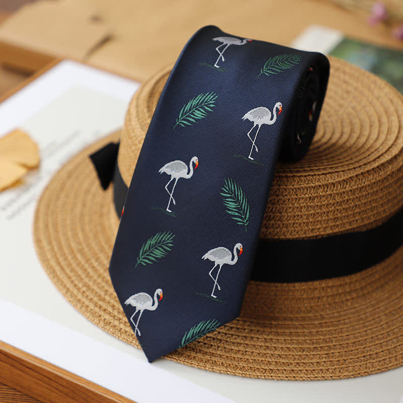 Questa cravatta a forma di fenicottero è composta da molti fenicotteri bianchi e foglie. Questa cravatta a forma di fenicottero diventerà sicuramente un capo alla moda tropicale. Può essere un regalo decente per gli uomini o un regalo grazioso per uso personale.